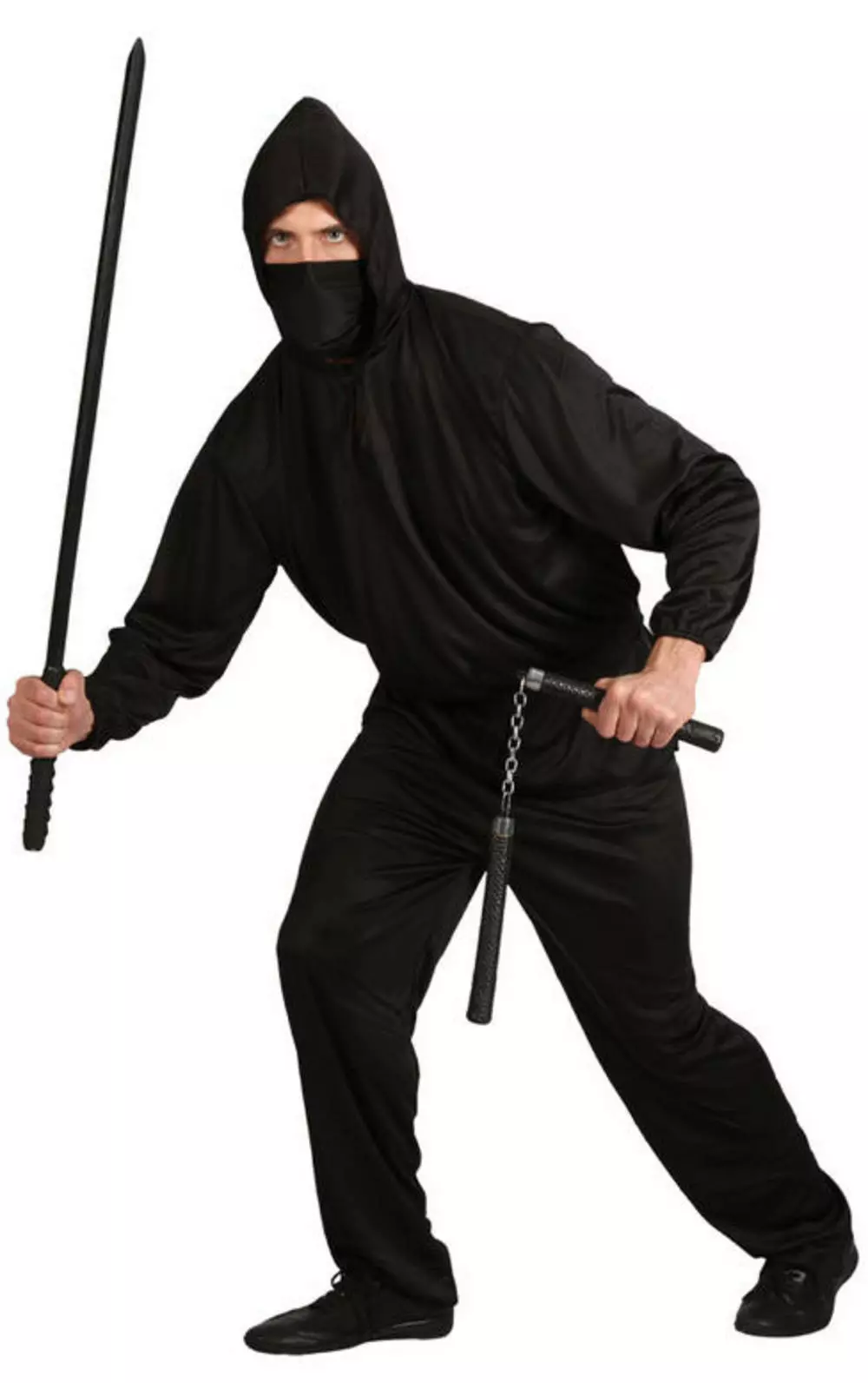 into the movie world with this all black Dark Ninja fancy dress costume.