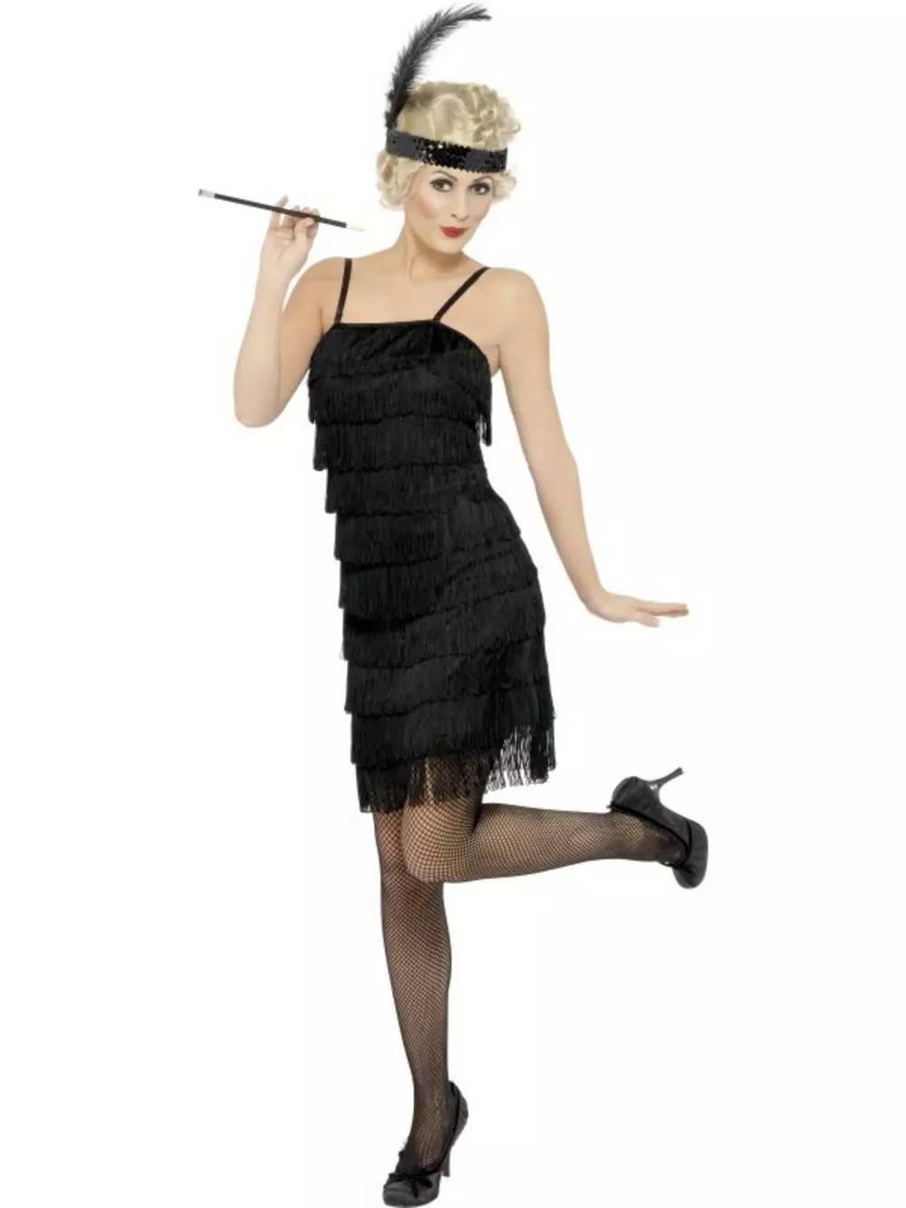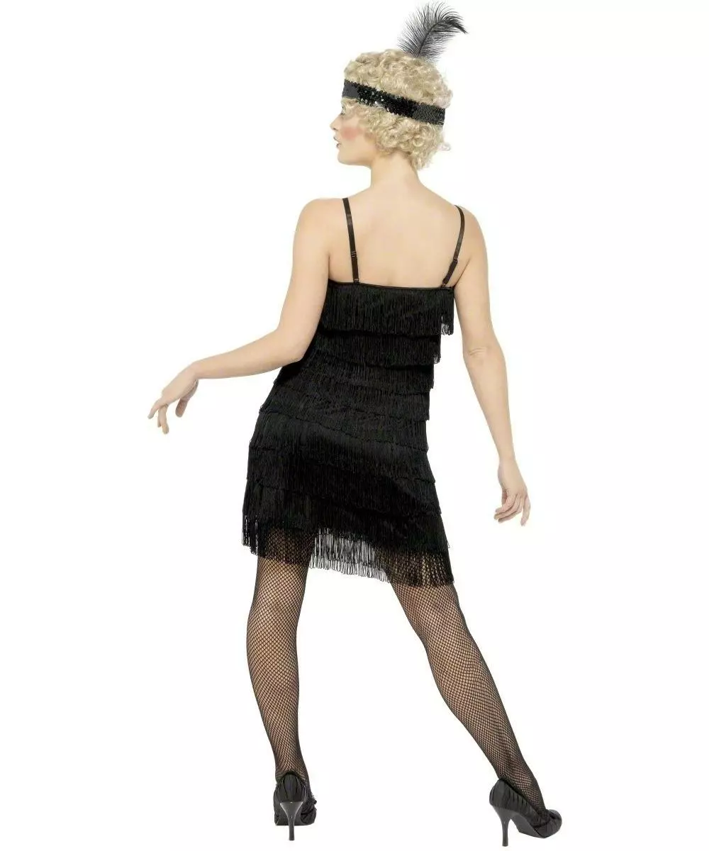 partner in this Black Fringe Flapper Fancy Dress Costume.