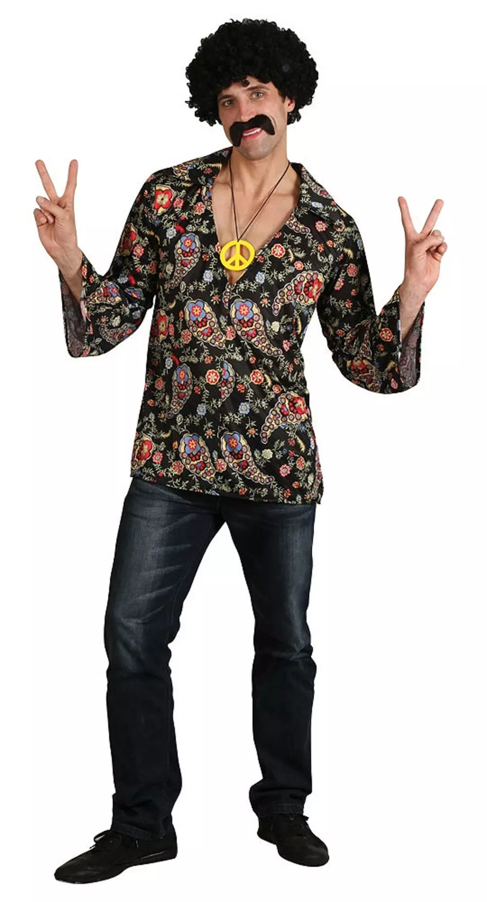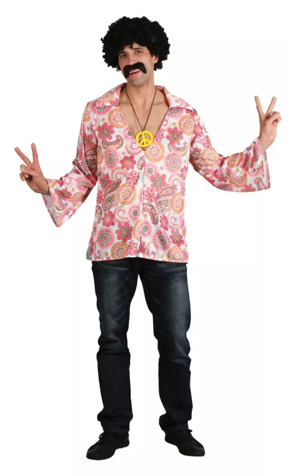 1960s on in this fabulous and funky Groovy Hippie Shirt fancy dress