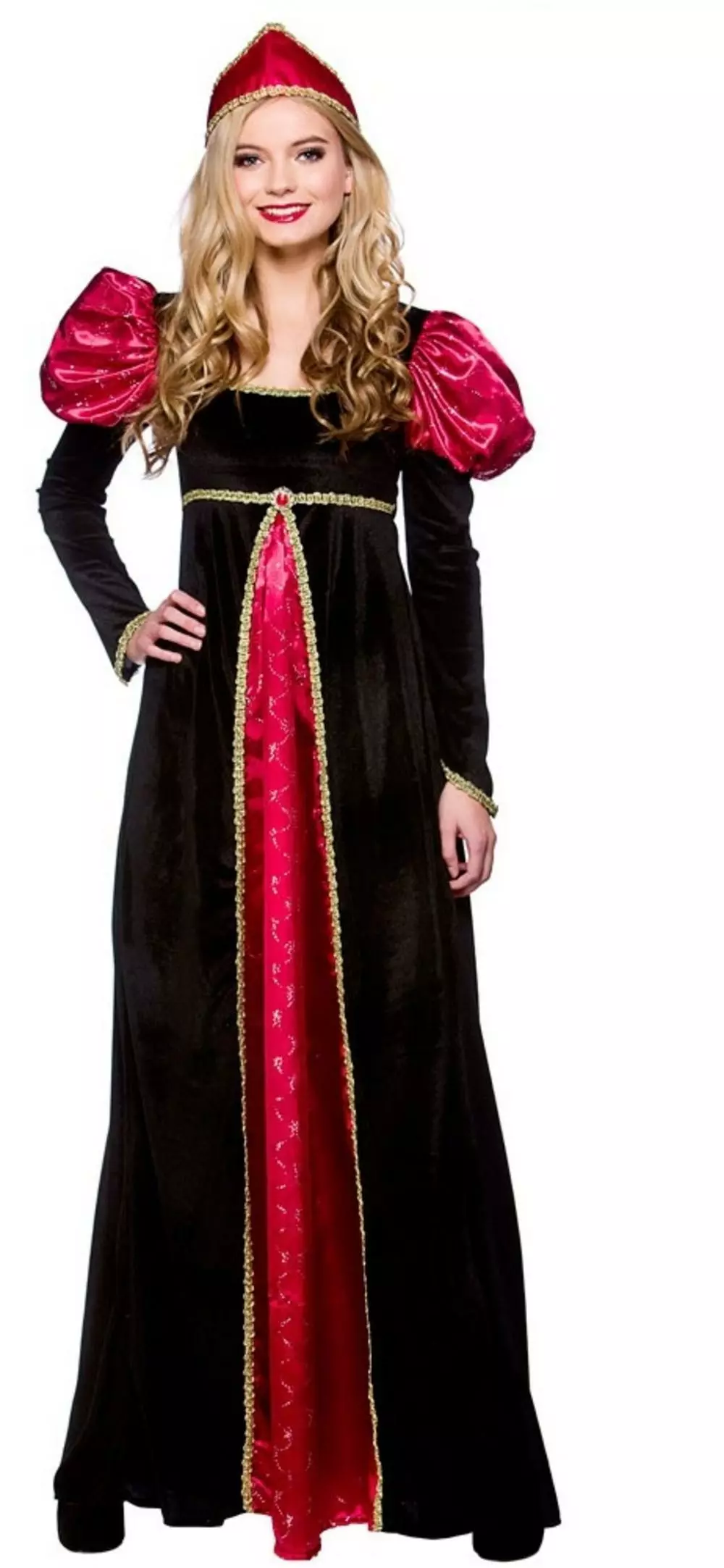 a medieval princess and comprises of a long black velvet effect dress