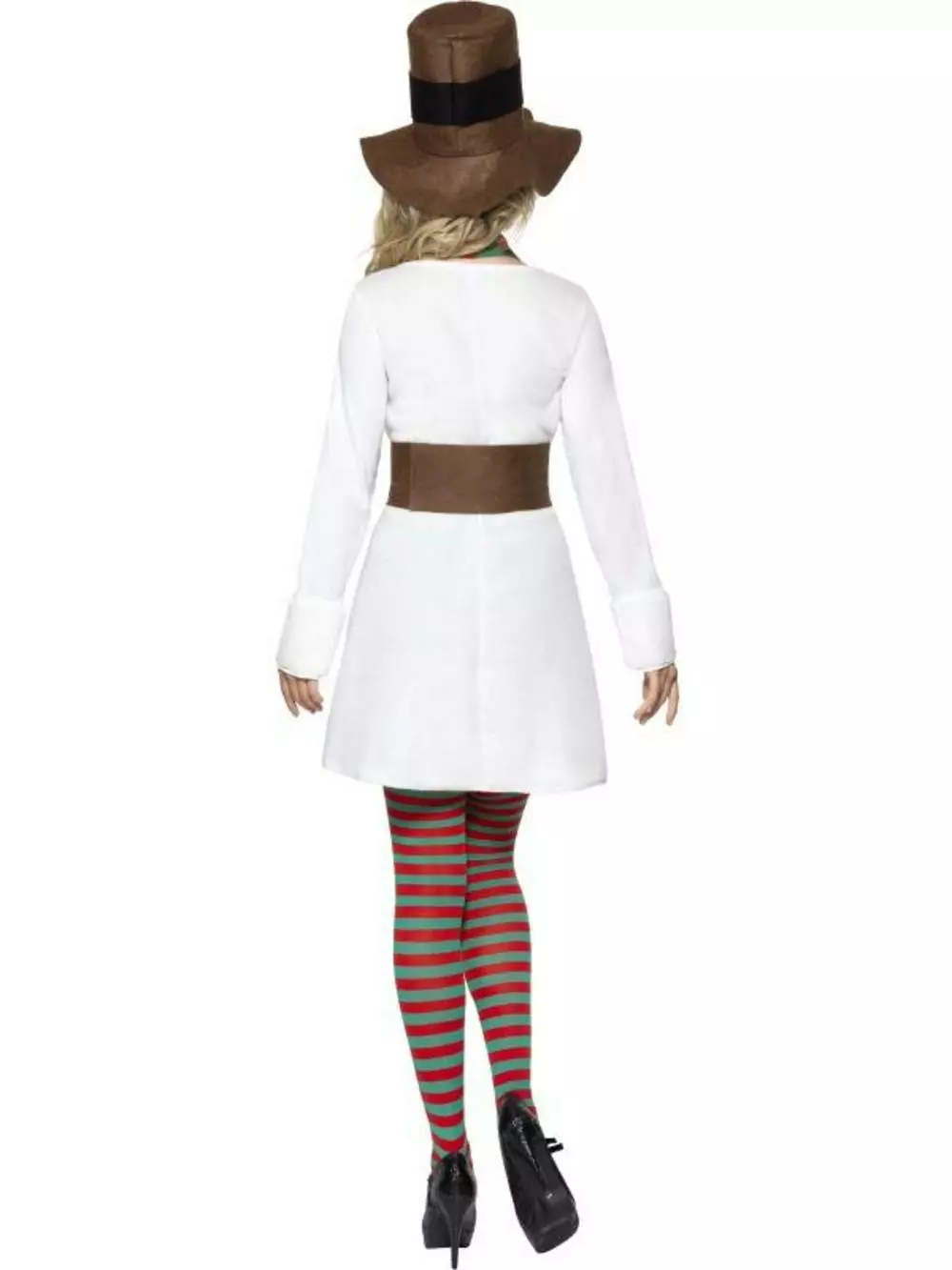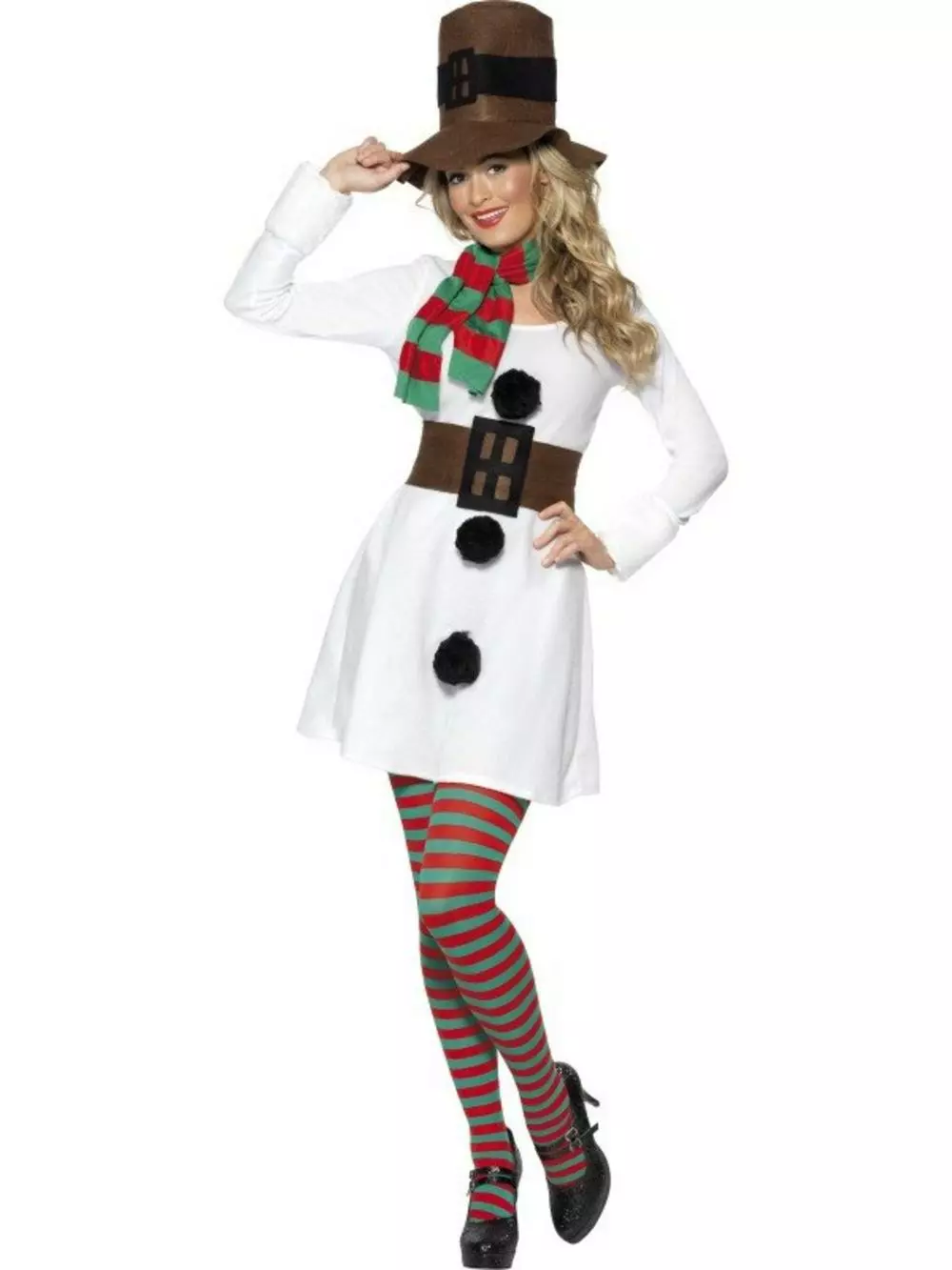 snowman fancy dress costume is a green and red striped scarf and a brown
