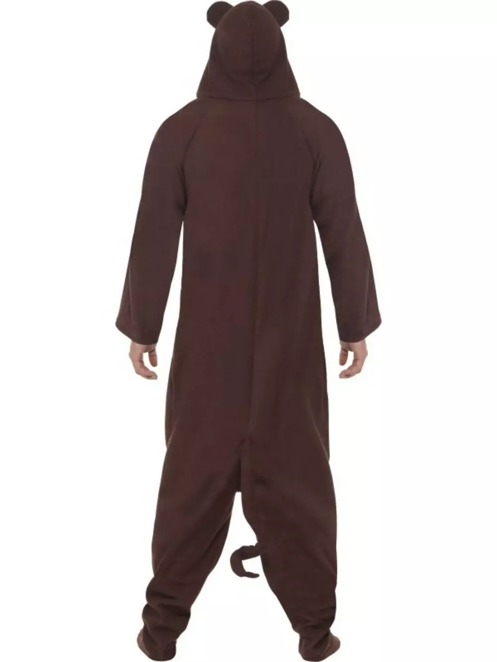 The monkey costume is made of an all in one brown jumpsuit with contrast
