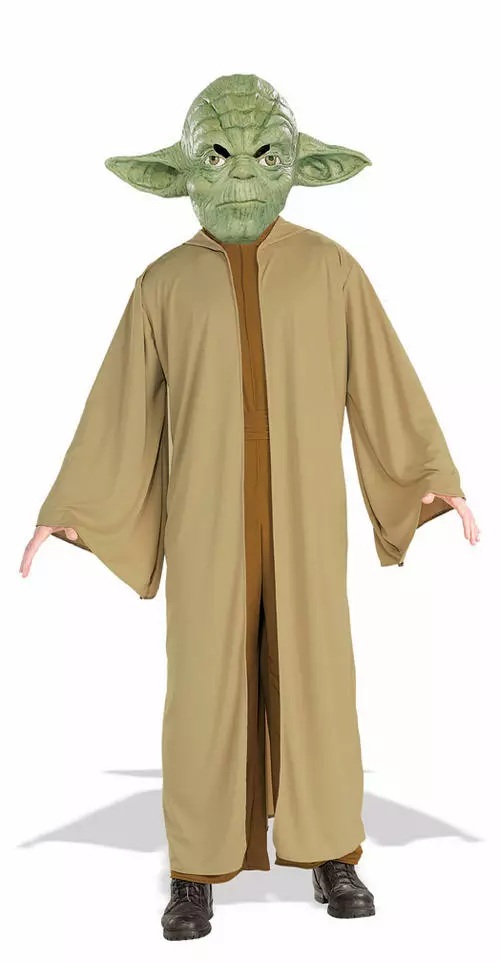 and comprises of a long beige robe and realistic 3/4 Yoda latex face